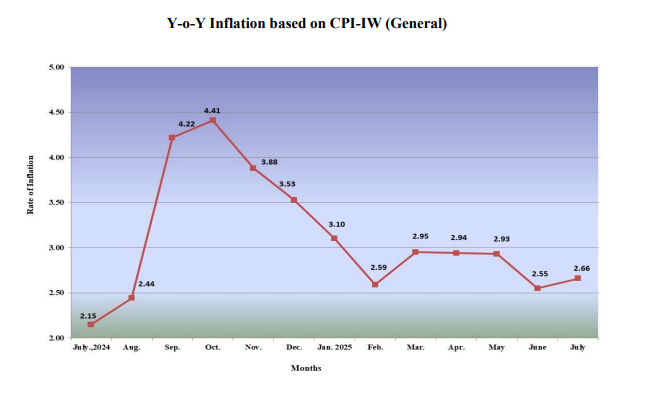 3. Year-on-year inflation for the month of July, 2025 stood at 2.66% as compared to 2.15% in July, 2024.