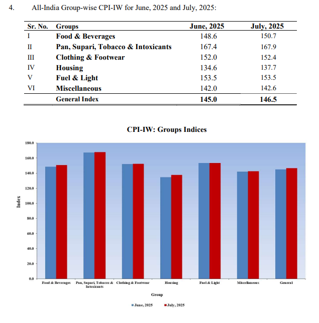 2. The All-India CPI-IW for July, 2025 increased by 1.5 point and stood at 146.5 (one hundred forty-six point five).